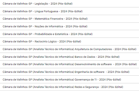 Câmara de Valinhos SP (Analista Técnico de Informática) Pós Edital – Estratégia 2024