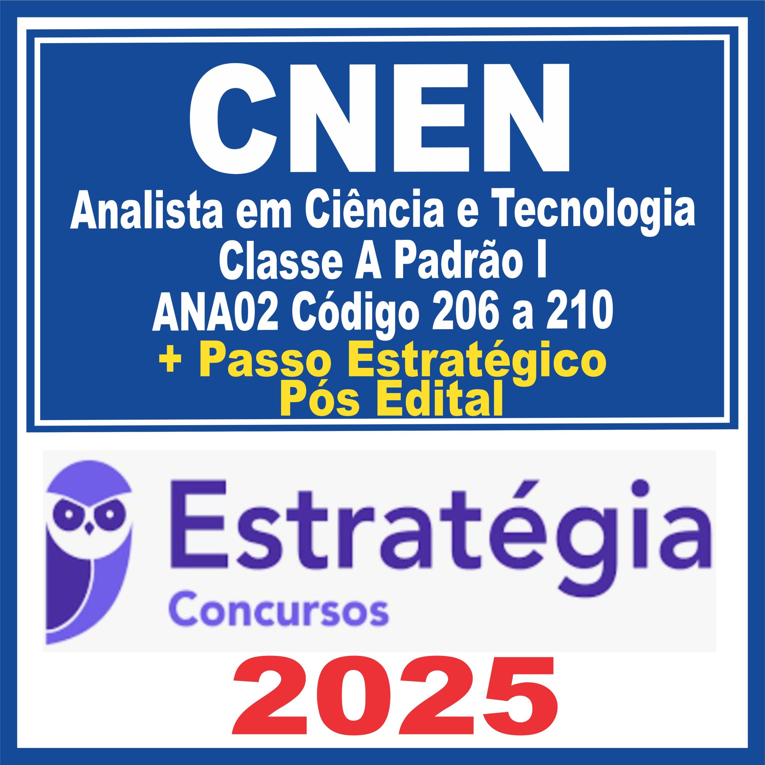 CNEN (Analista em Ciência e Tecnologia Classe A Padrão I – ANA02 Código 206 a 210) Pacotaço – Pacote Teórico + Pacote Passo Estratégico – 2025 (Pós-Edital)