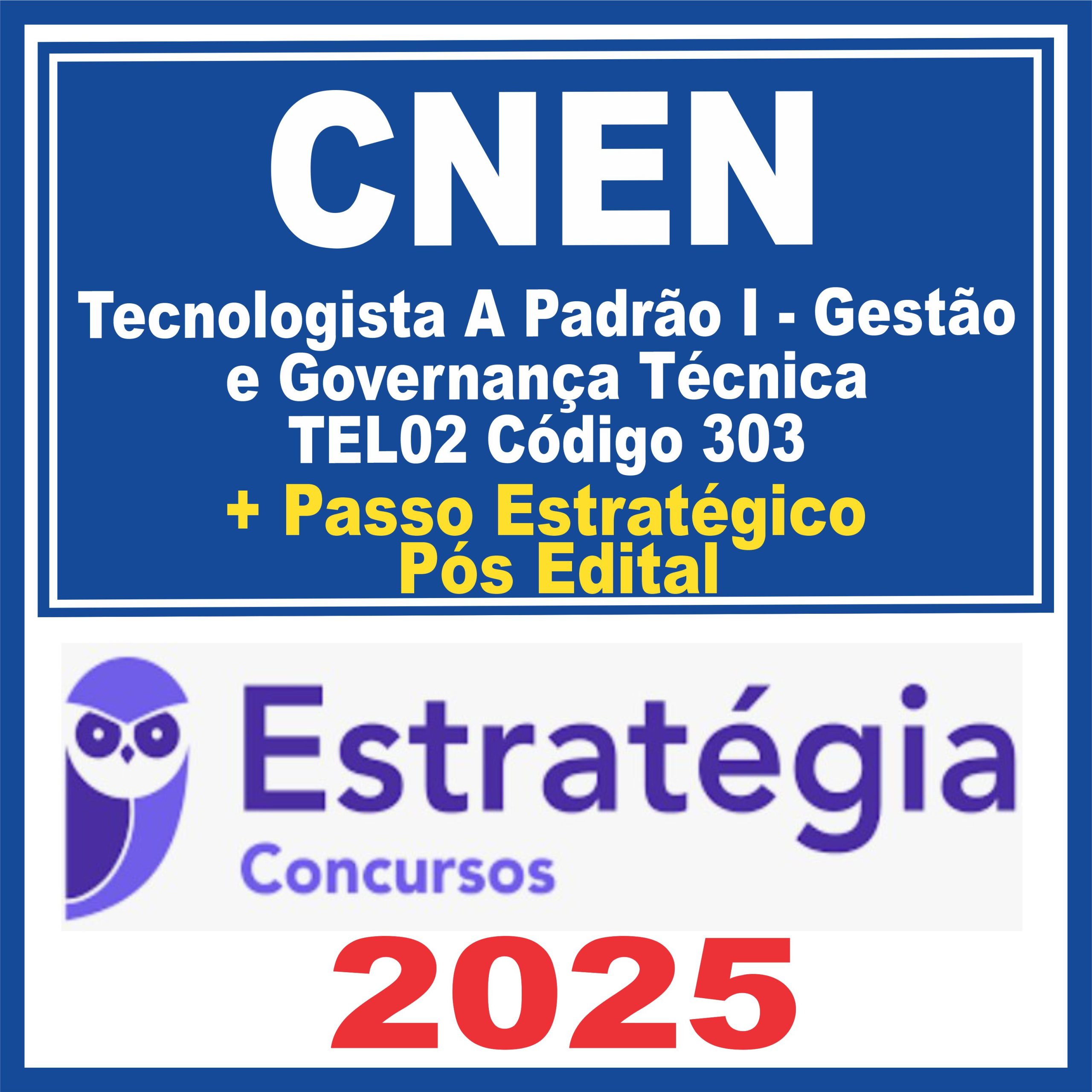 CNEN (Tecnologista A Padrão I – Gestão e Governança Técnica – TEL02 Código 303 + Passo) Pós Edital – Estratégia 2025